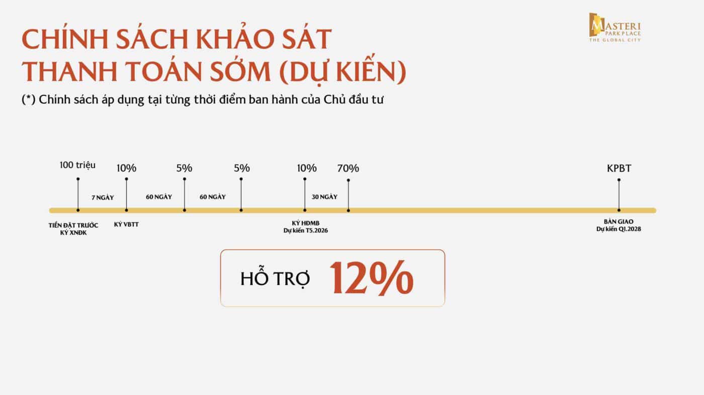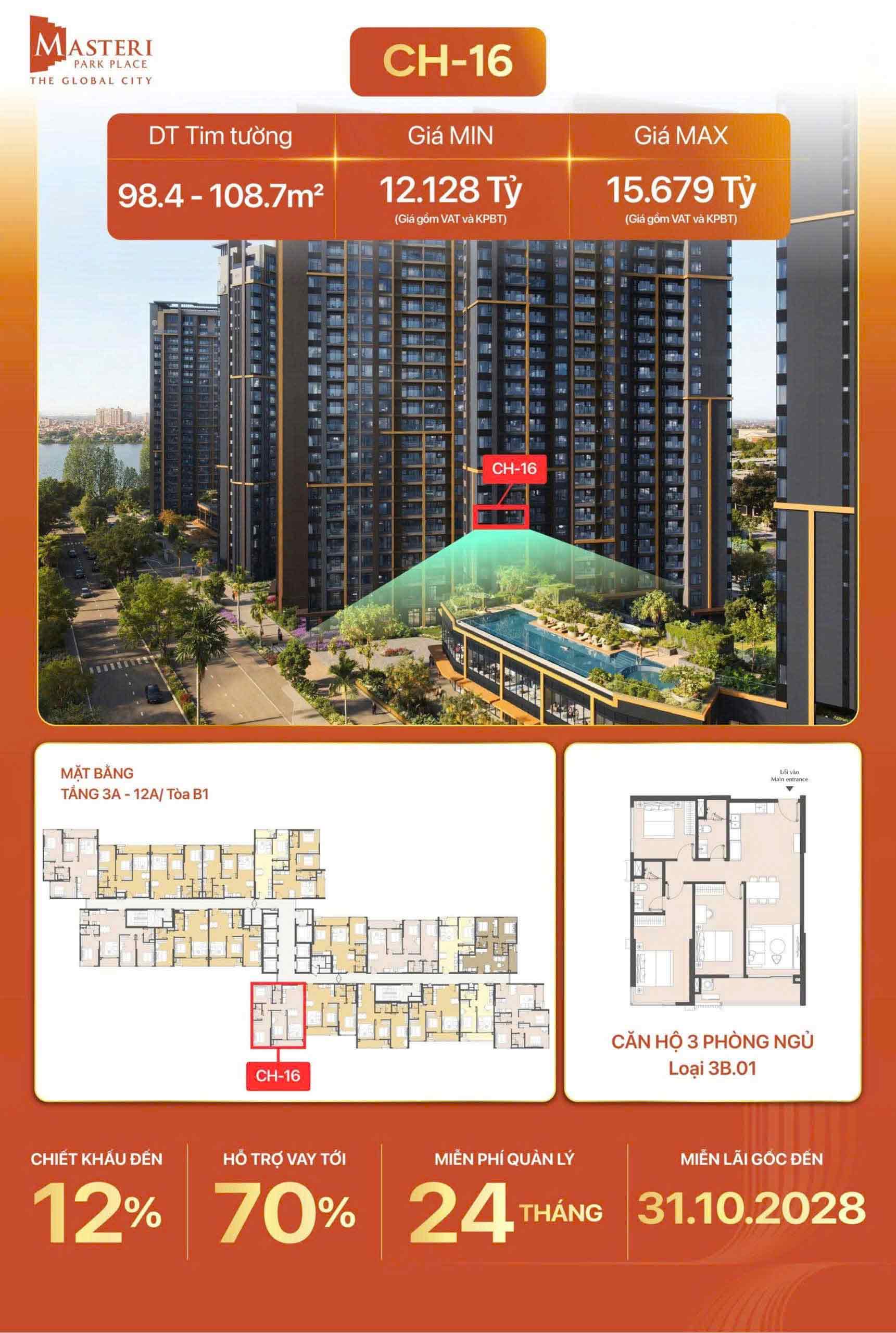 Masteri Park Place là một phân khu căn hộ cao cấp thuộc dòng sản phẩm Masteri Collection của chủ đầu tư Masterise Homes – một trong những tập đoàn bất động sản hàng đầu Việt Nam, nổi tiếng với các dự án đẳng cấp quốc tế. Dự án được chính thức ra mắt vào ngày 15/10/2025, đánh dấu bước tiến mới trong việc hoàn thiện bức tranh đại đô thị The Global City tại trung tâm TP. Thủ Đức (Quận 2 cũ), TP. Hồ Chí Minh. Với thiết kế tinh tế từ các đối tác quốc tế như Foster + Partners (thiết kế đô thị), HBA (thiết kế tổng quan) và Airoso Simétrico (thiết kế nội thất), Masteri Park Place không chỉ là nơi an cư mà còn là biểu tượng của lối sống thượng lưu, giao thoa giữa thiên nhiên và đô thị hiện đại.
